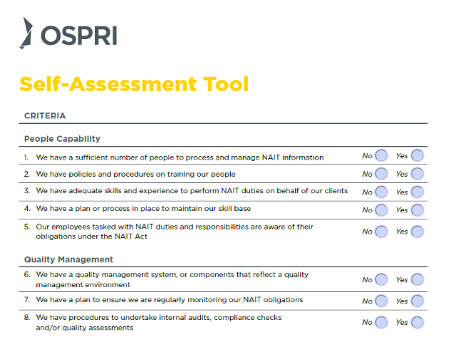 NAIT accreditation audit tool: information providers and entities dealing with NAIT animals
